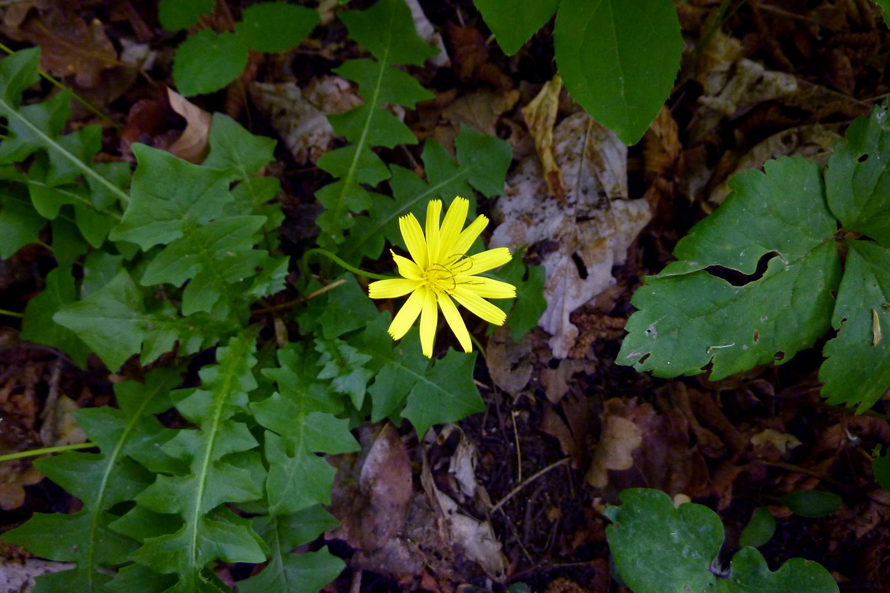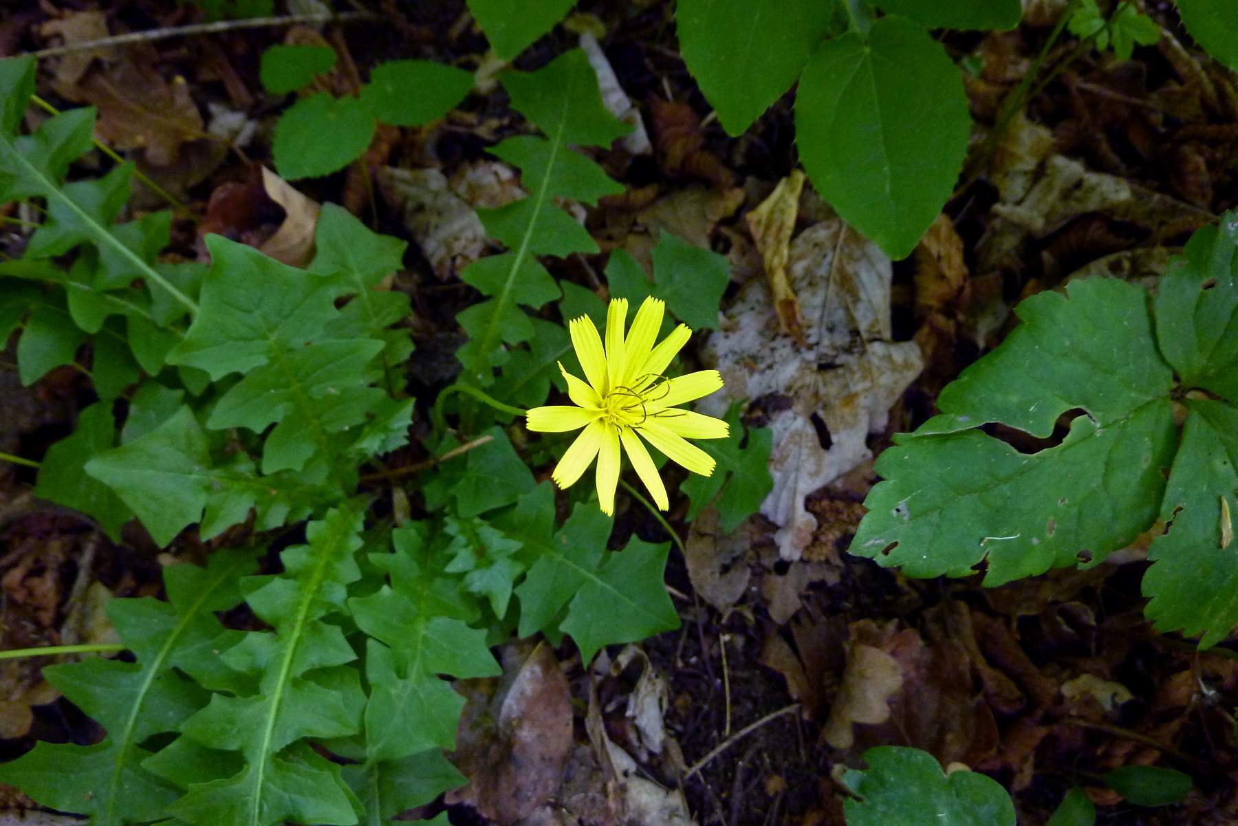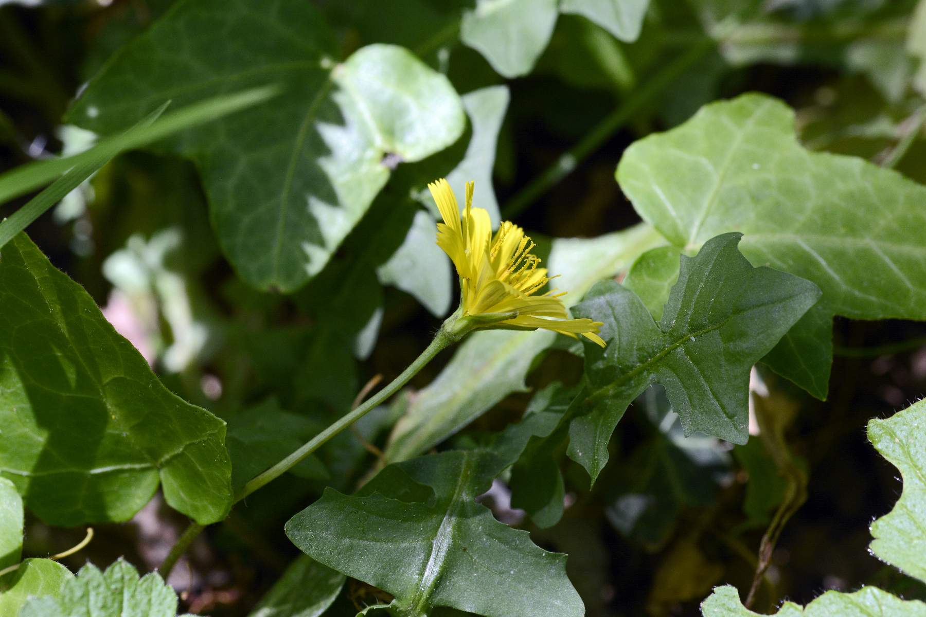 Foto di Aposeris foetida, Lattuga fetida, eseguite sulle colline di Caerano TV il 23 Aprile 2018