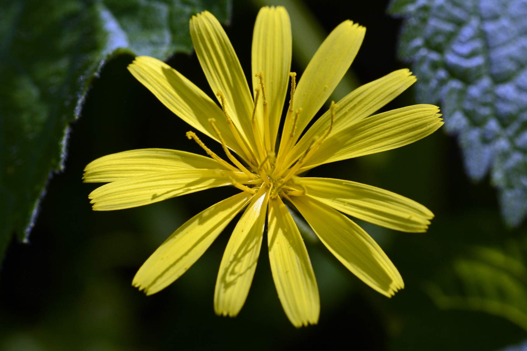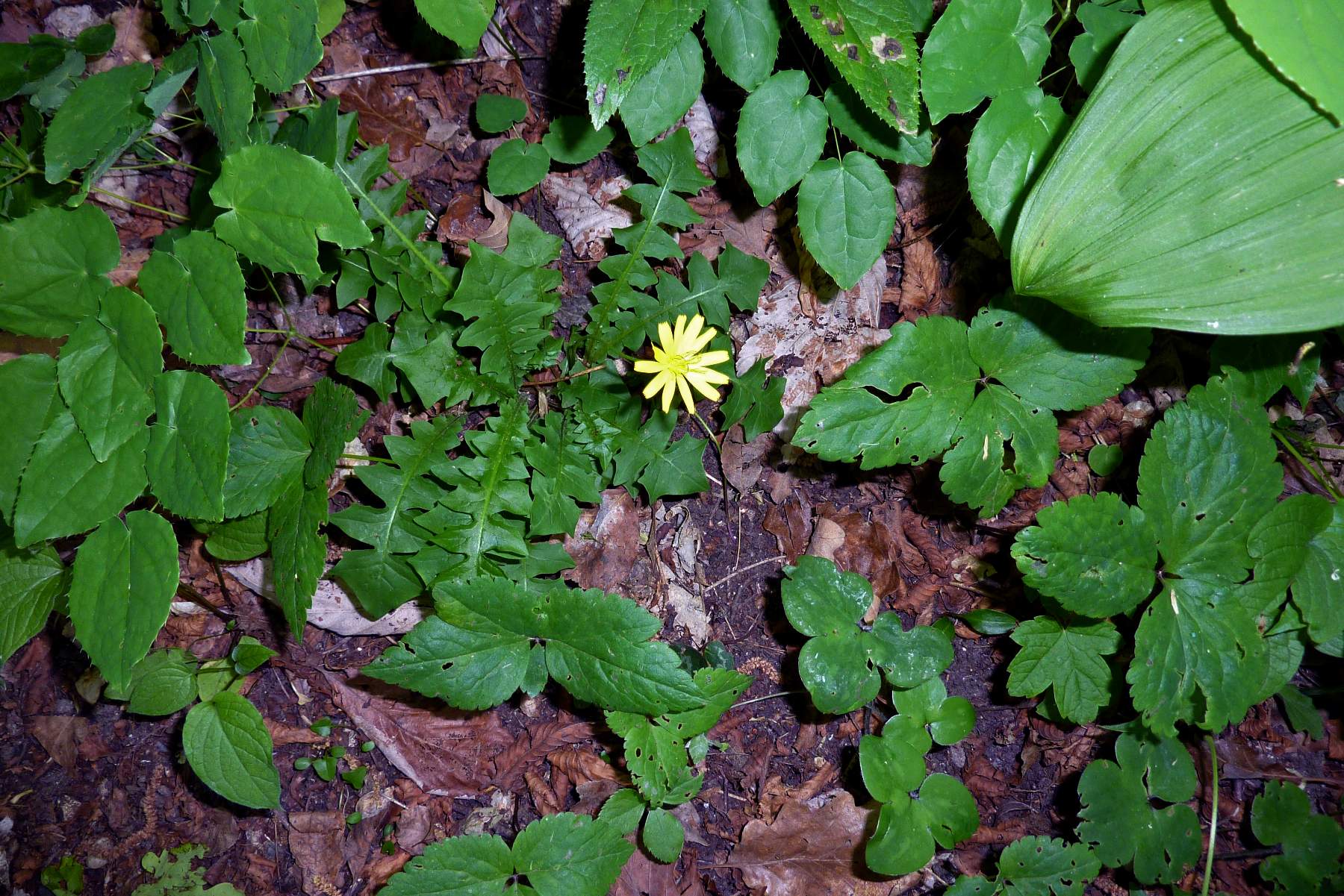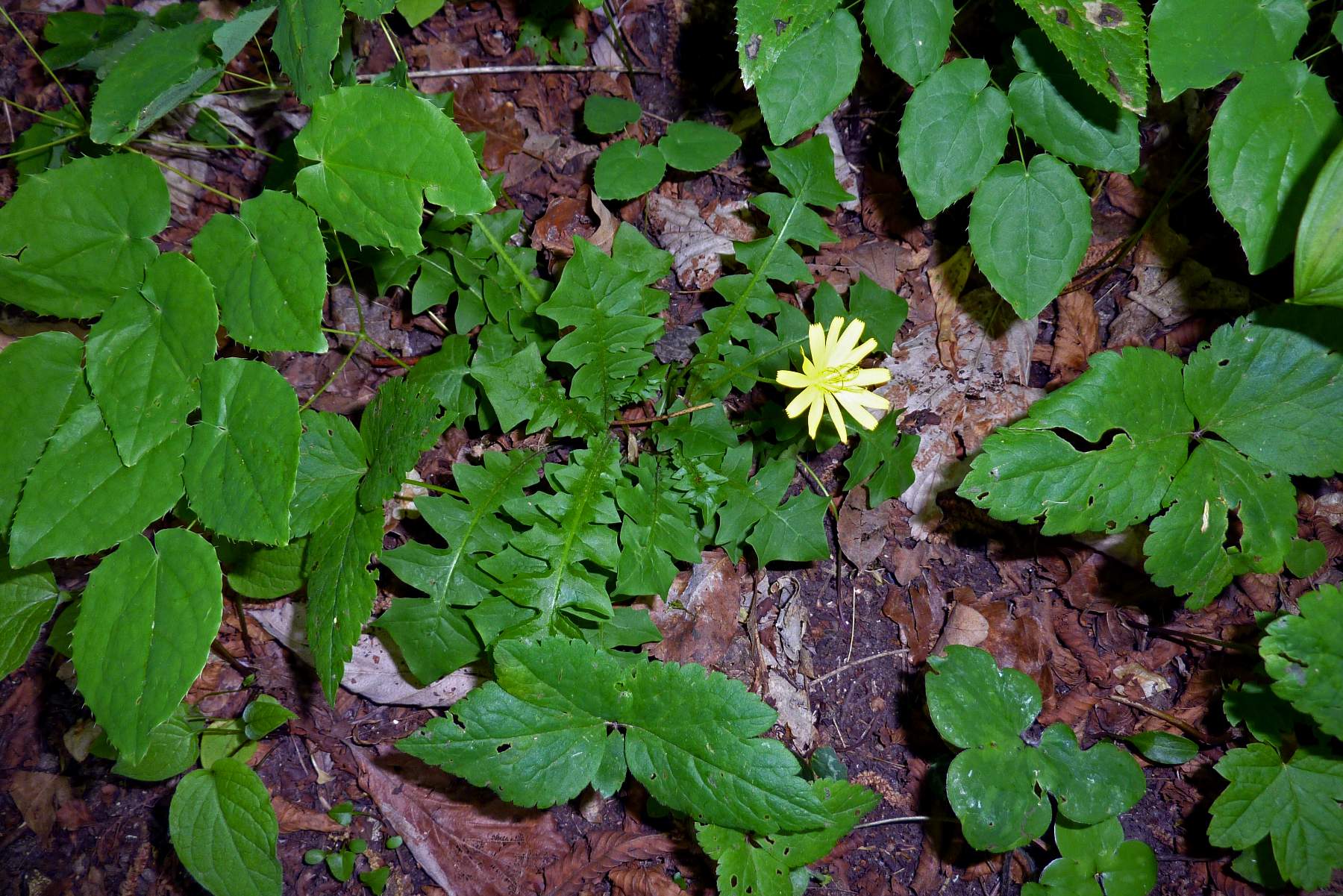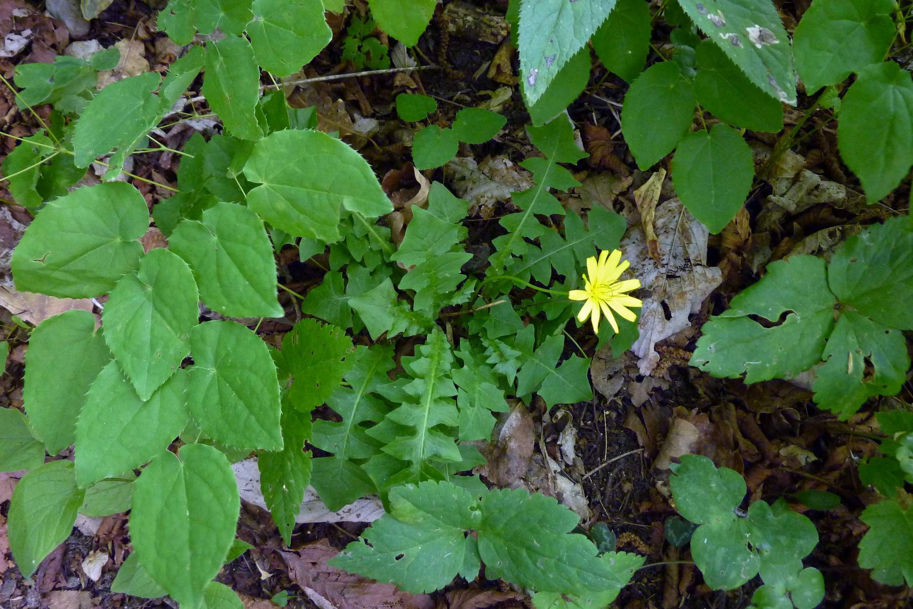 Foto di Aposeris foetida, Lattuga fetida, eseguite sulle colline di Caerano TV il 23 Aprile 2018