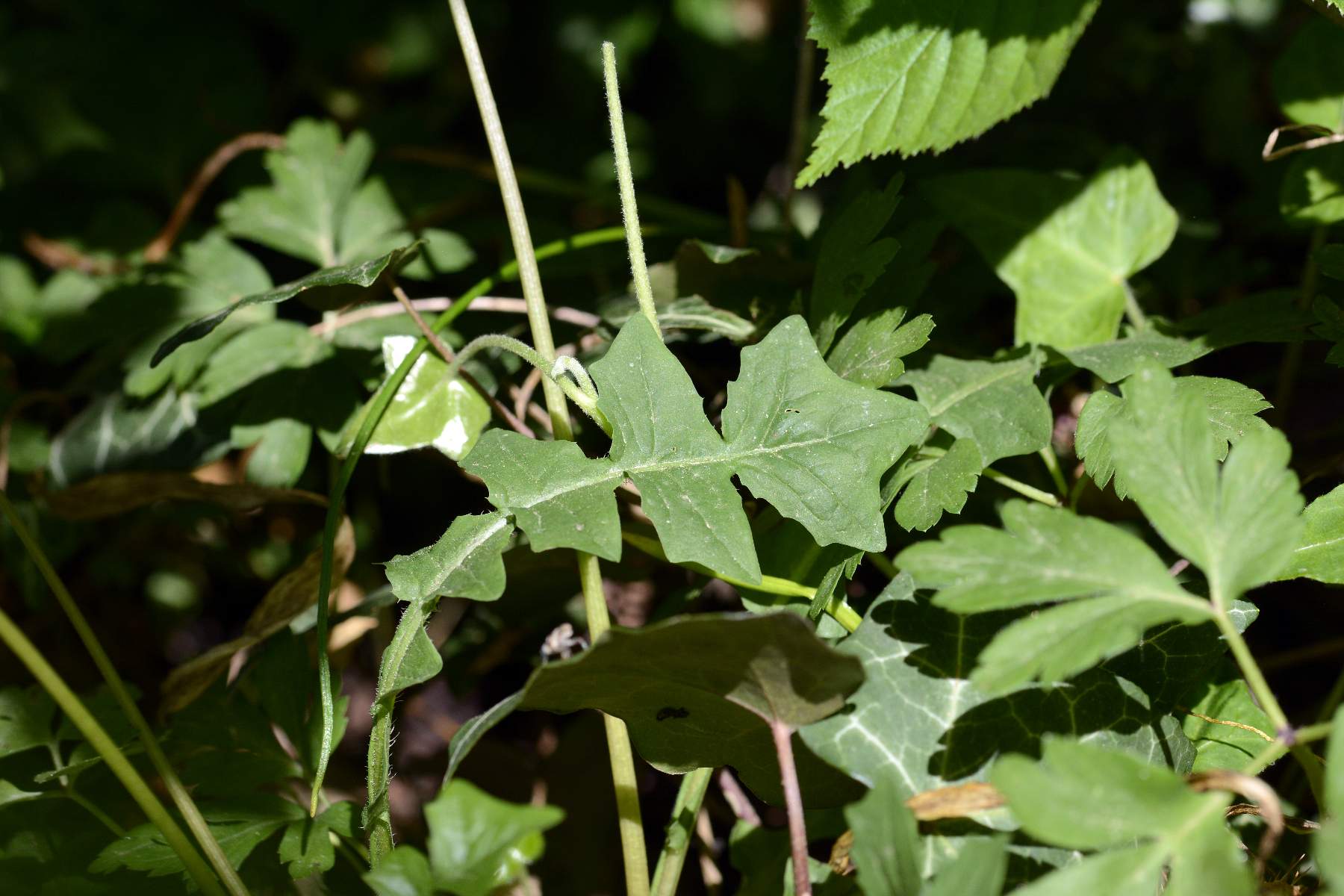Foto di Aposeris foetida, Lattuga fetida, eseguite sulle colline di Cornuda il 02 Maggio 2012